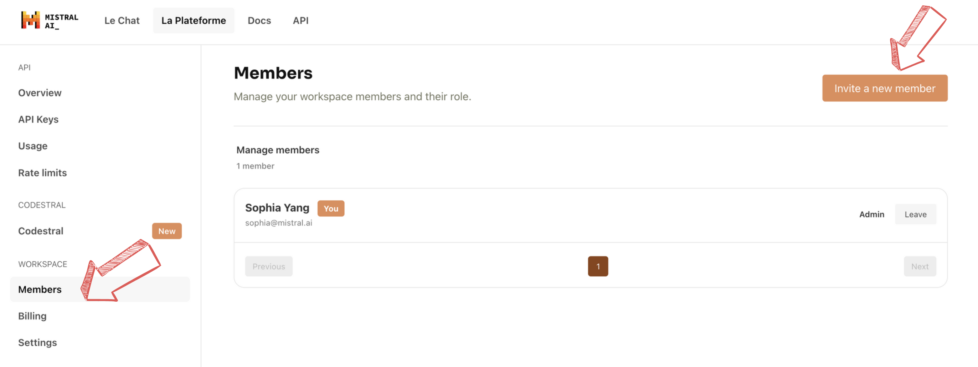A La Plateforme workspace is a collective of accounts, each with a designated set of rights and permissions. Creating a workspace for your team enables you to: