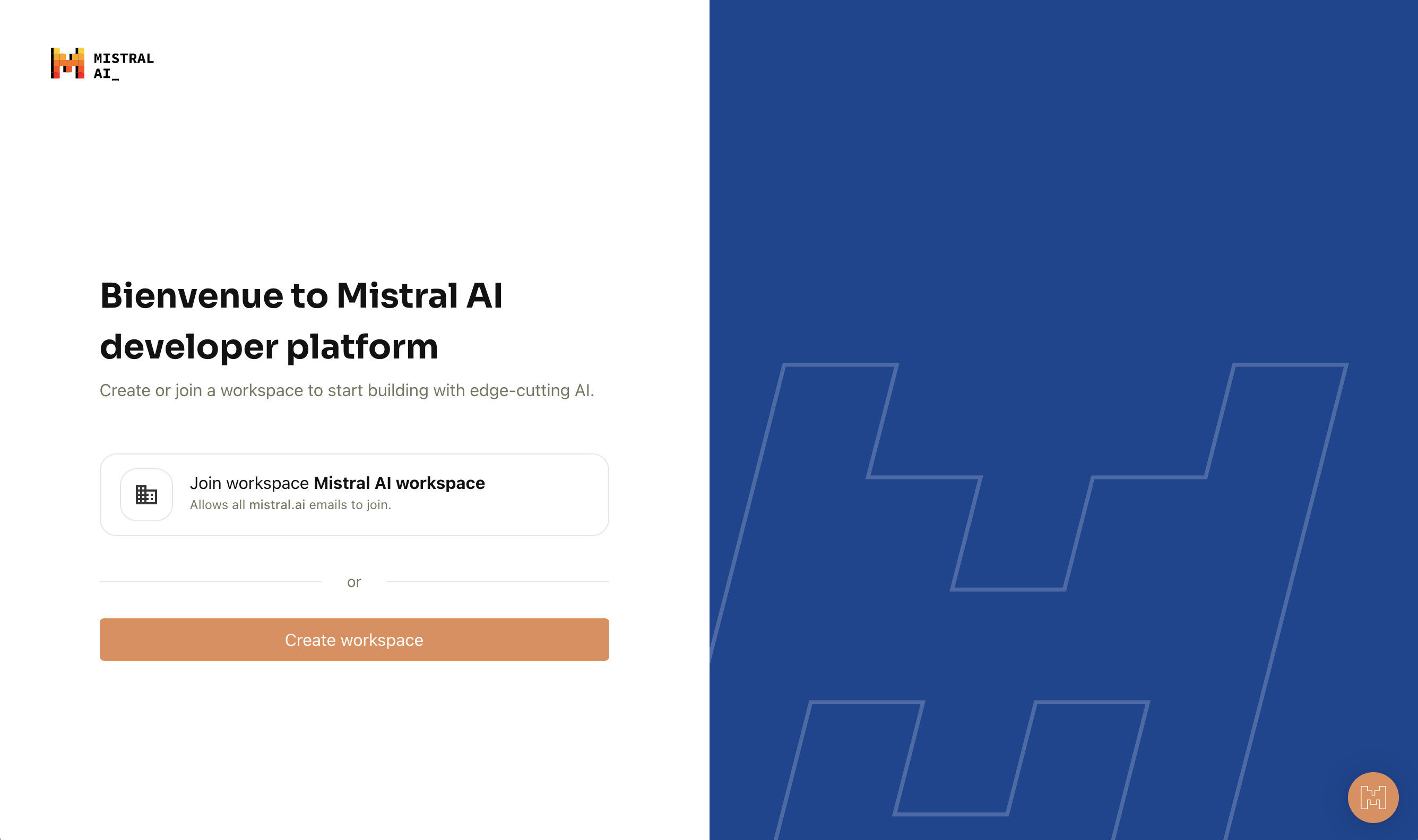When you first join La Plateforme, you can either create or join a workspace. Click on "Create workspace" to create and set up your workspace.